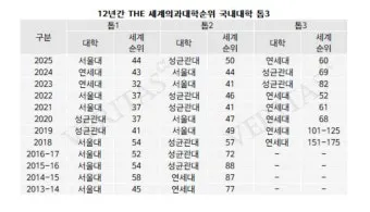 가장 눈에 띄는 결과는 뭐니뭐니해도 서울대의 9년 연속 1위 달성이에요. 하지만 올해는 조금 달랐습니다. 2위 연세대와의 점수 차이가 고작 1점에 불과했거든요.