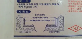 바닥 미장이나 바닥 찍기용은 또 다릅니다. 강도가 더 필요하니까 시멘트 1 대 모래 2 비율로 배합해요. 여기에 필요하면 방수제를 첨가하기도 하죠.