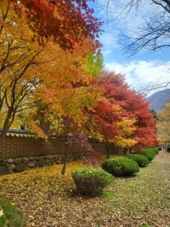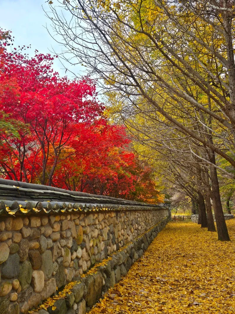 단풍 절정은 보통 10월 27일부터 11월 10일 사이예요. 은행나무 개방일이 이 시기와 맞물리면 정말 환상적인 풍경을 볼 수 있습니다. 황금빛 은행잎이 바닥에 쌓인 모습은.. 사진으로는 담을 수 없는 아름다움이에요.