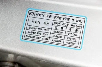 근데 정작 내 차에 맞는 적정 공기압이 얼마인지 모르는 분들이 많아요. 운전석 도어 안쪽이나 주유구 뚜껑에 스티커로 붙어있는데 한번 확인해보셨나요?