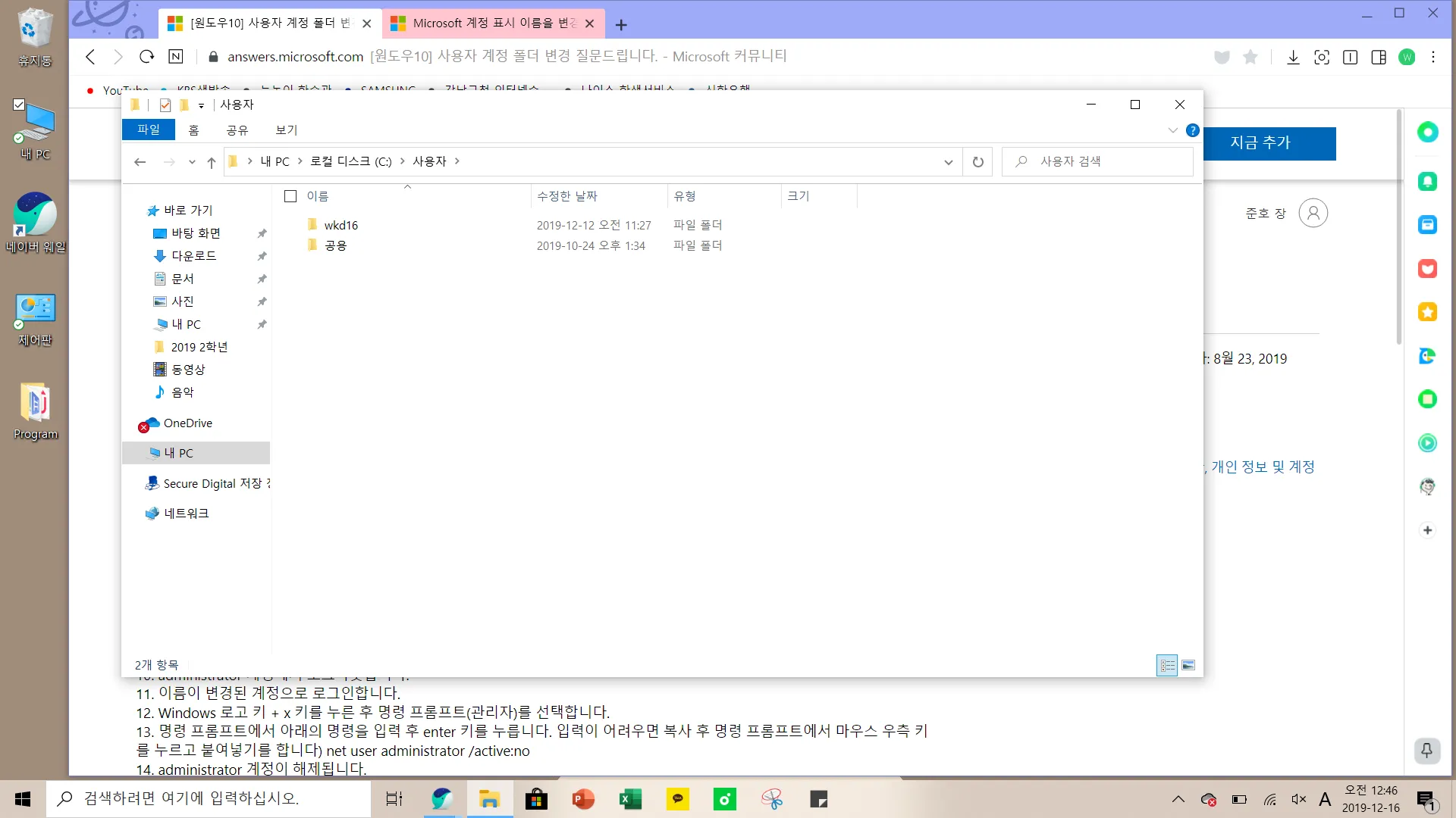 다만 이 방법도 마찬가지로 C:\Users\ 폴더의 실제 디렉토리명은 안 바뀝니다. 표시 이름만 수정되는 거죠.