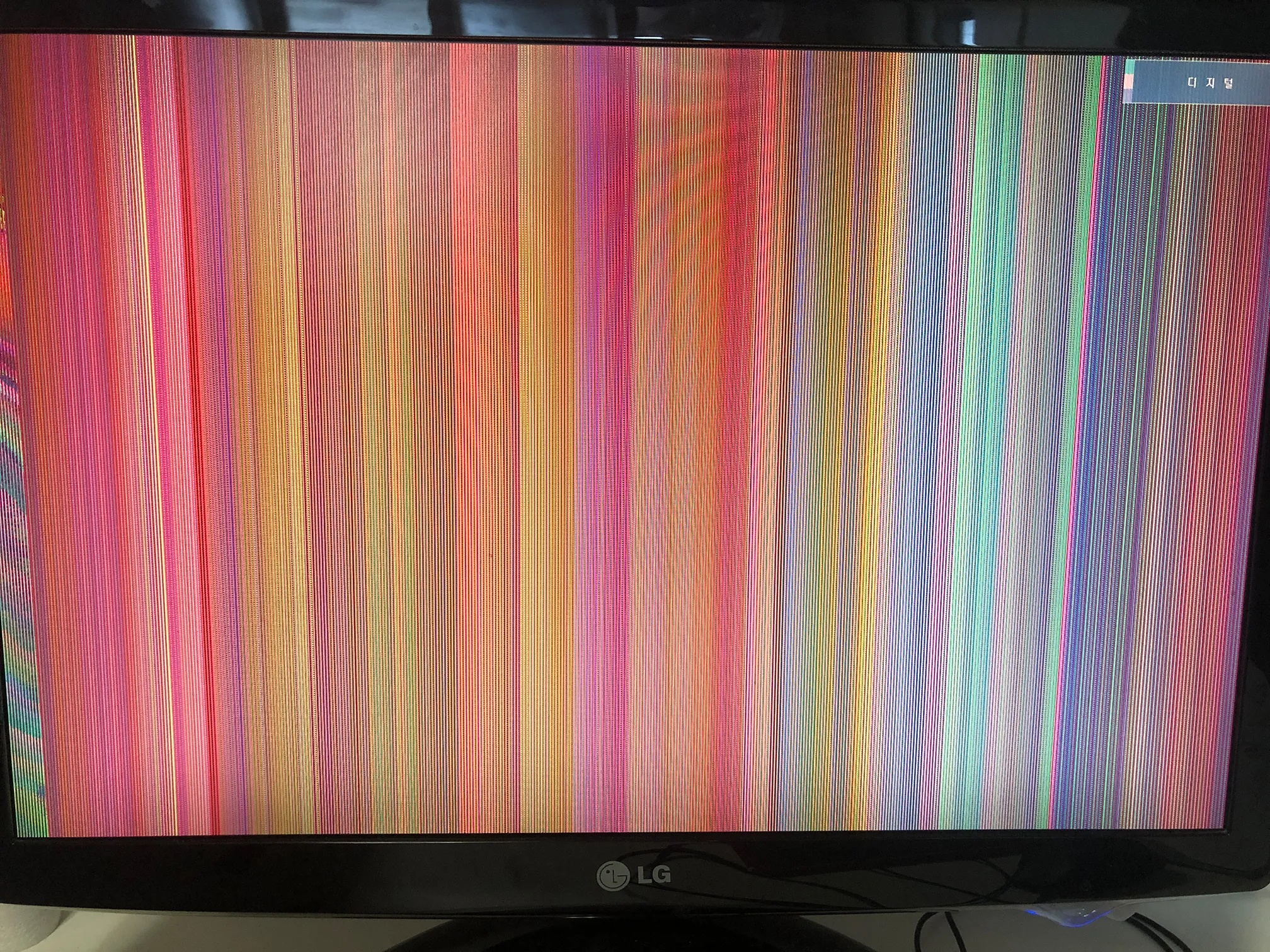 저는 집에 있던 맥북을 연결해봤는데, 맥북에서도 똑같이 세로줄이 보이길래 '아, 이건 모니터 문제구나' 하고 확신했었죠.