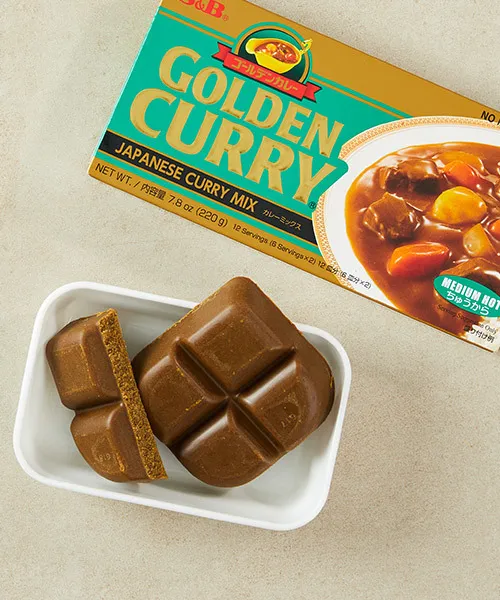 골든카레 루의 주성분은 밀가루, 식용유지, 카레가루, 전분류예요. 이 중에서 전분이 물과 결합하면서 걸쭉해지는데, 전분 1g이 물 5~6g을 흡수할 수 있습니다.